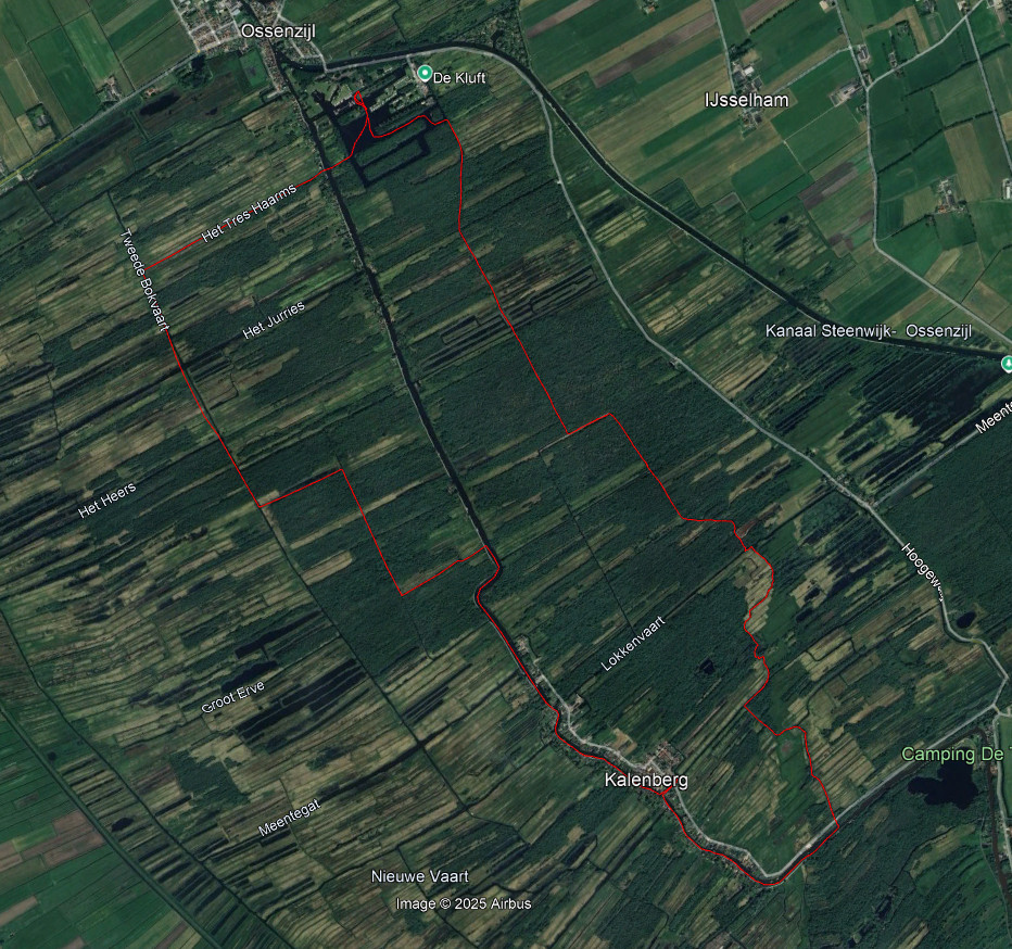 Rondje rond de Weerribben vanuit de Kluft in Ossenzijl. De route track is vastgelegd met de app Canua en geïmporteerd in Google Earth.