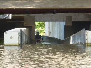 In entgegengesetzter Richtung, also “havelaufwärts”, können die Boote durch jedermann getreidelt werden. Man zieht sie einfach vom parallel verlaufenden Fußgang aus hoch. Durch den Fisch-Kanu-Pass werden die Boote direkt an den Stadtkern herangeführt.