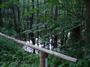 - blijkt de weerspiegeling van de bomen in een vennetje.